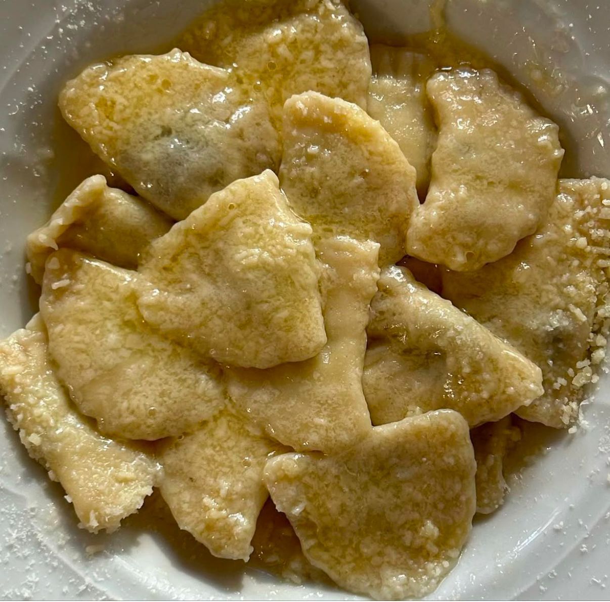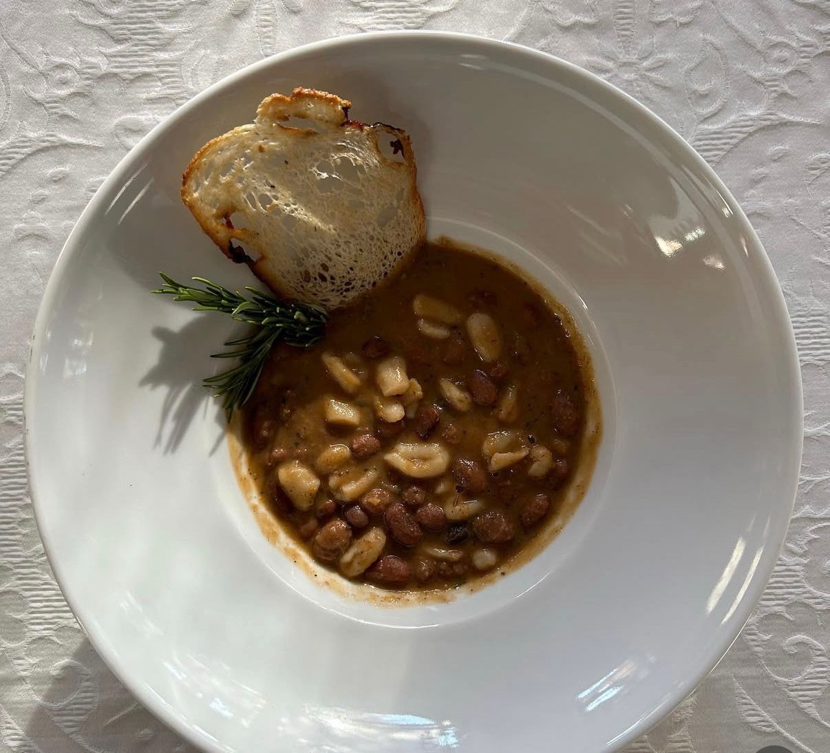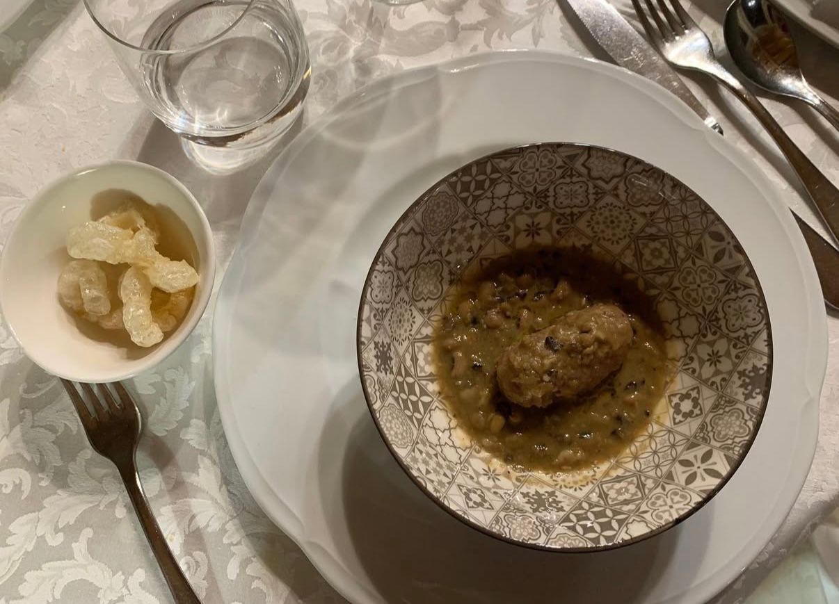 Non solo tortelli però ma anche tanti altri piatti tipici del territorio, che seguono le stagioni, come la rivisitazione dei fagioli dell’occhio con i salamini e la torta bertolina (con l’uva fragola).